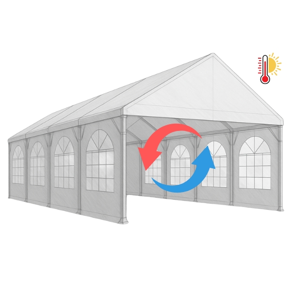- Prémium minőségű, tűzálló PVC sátor – biztonságos és tartós.